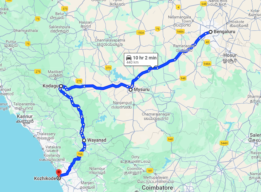 - Start from Bangalore and End in Calicut