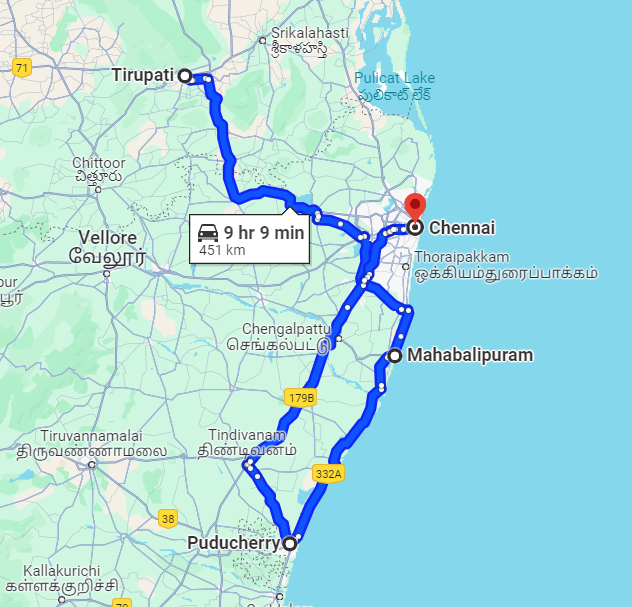 7 Days - 6 Nights (1N Chennai – 1N Tirupati - 2N Mahabalipuram – 2N Pondicherry)