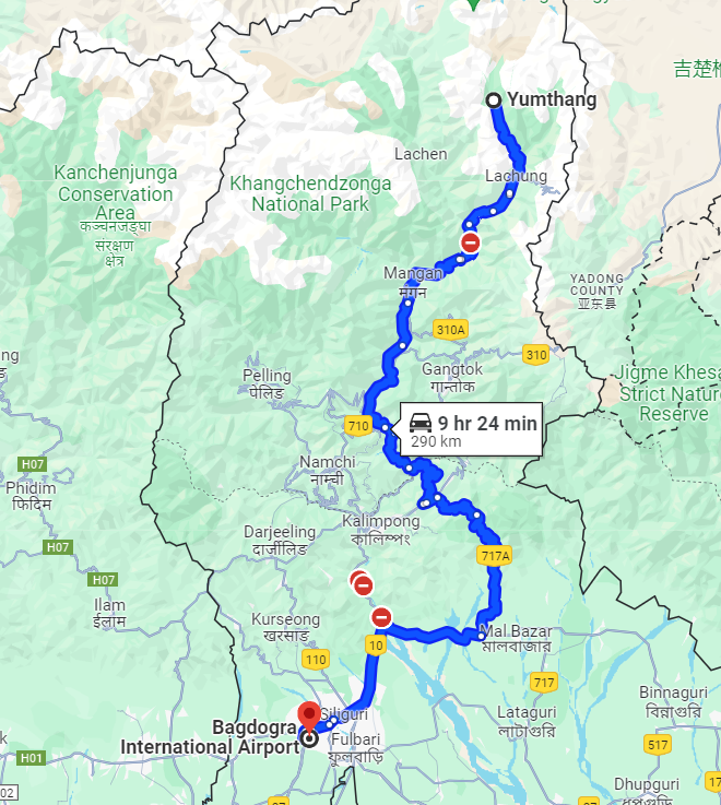 - In Lachung, Singhik View point, Chumthang Valley, Twin Falls and Vima Falls