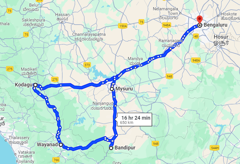 7 Days - 6 Nights (1N Mysore – 1 Bandipur – 2N Wayanad – 2N Coorg)